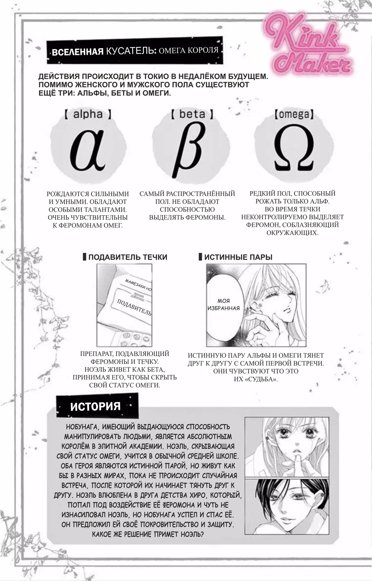 Альфы — носители особых генов – красивые, умные и одарённые, но рождаются они крайне редко: 1 на 100 000 человек. И Суо Нобунага – один из них.Всё, чего он желает, моментально попадает к нему в руки, кроме одного… Он ищет судьбой предназначенную ему партнёршу, девушку вымирающего вида!