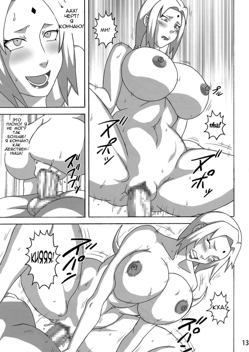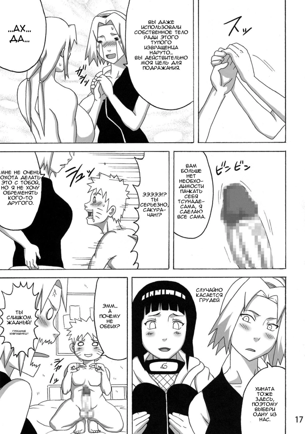 Наруто помогают лечиться Тсунаде, Сакура и Хината.